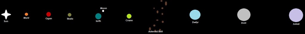 - Through arcane scrying and observation, scholars have discovered that an extensive asteroid belt exists between Crann and Dwfyr, as well as that the planet Jumal has a ring system.