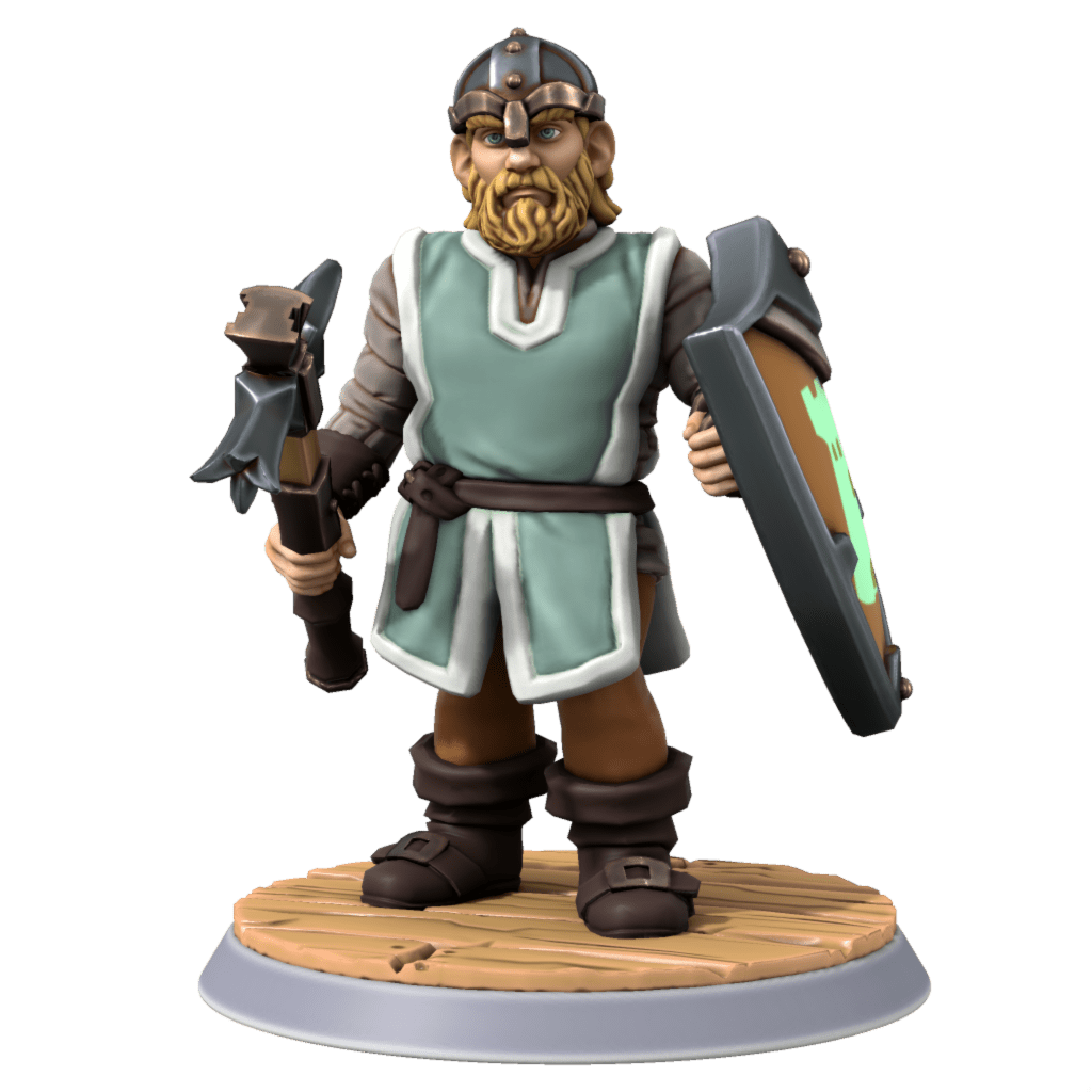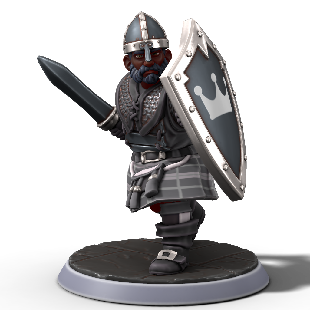 The Warshield clan is a service clan sworn to the Forgecrown clan. Their simple clan tartan of light grey and dark gray is meant to represent their seclusion from the politics and strife typical between clans, and instead symbolize their devotion as guardians and enforcers for the Forgecrown clan. The Warshield clan is affiliated strongly with the army of Dwyrheim, as well as security and operations in the grand dwelve and capital of the jarldom, Bergburg. Shields are commonly used by members of the clan, especially since they regard themselves as shields against harm and the ruling Forgecrown clan.