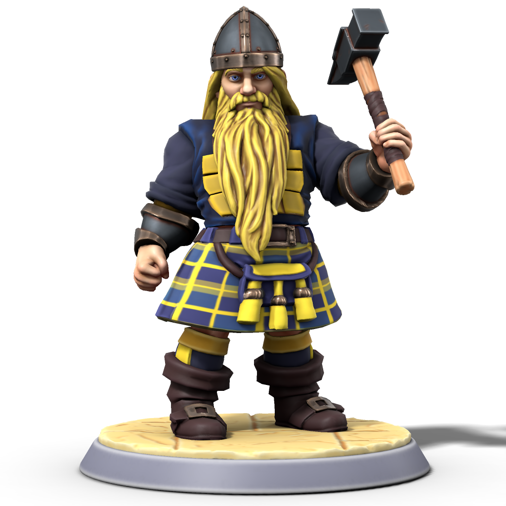 The dwarves of the Bluestone clan typically have tanned complexions, with vibrant blond hair and bright blue eyes. They wear a kilt with a simple blue and yellow tartan. The clan prefers the use of lapis lazuli gemstones in their jewelry, and many favor hammers as a personal weapon. Based out of the dwelve of Stanburg, the Bluestone clan are the best crafters and artisans of Dwyrheim, and are sought after for their superb goods. The Bluestone clan strongly believes in doing what’s right, honest, and good above all else, even if that may mean compromising or ignoring dwarven laws or traditions. As such, the Bluestone clan often finds itself at odds with the traditionalistic Bloodaxe clan.